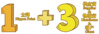 以立邦公司為“1”,自上而下從立邦的管理團隊到所有員工;攜手行業(yè)內上下游企業(yè)為“3”,包含供應商、物流商與客戶,搭建全供應鏈質量、健康、安全、環(huán)境(QHSE)的專業(yè)隊伍。不但將安全責任逐級分解落實到全員,同時建立與相關方共贏安全的概念,向先進的上下游供應鏈的企業(yè)學習,傳遞立邦的安全、企業(yè)社會責任理念,帶領供應鏈的企業(yè)持續(xù)改善,共同實現在環(huán)保、安全與健康領域現狀的社會責任承諾。立邦“1+3”計劃具體項目涵蓋:高層診斷、職業(yè)健康安全管理、法律法規(guī)和產品安全和ISO管理體系定期審查等。